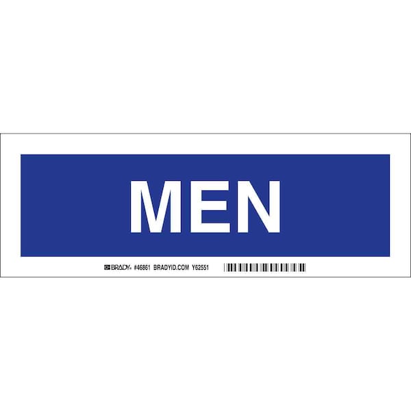 Restroom Sign, Sign Subject Matter Restrooms, Height 3-1/2 In., Width 10 In., Sign Material Aluminum, Sign Mounting Style With Mounting Holes, Header No Header, Legend Men, Printed Language English, Sign Shape Rectangle