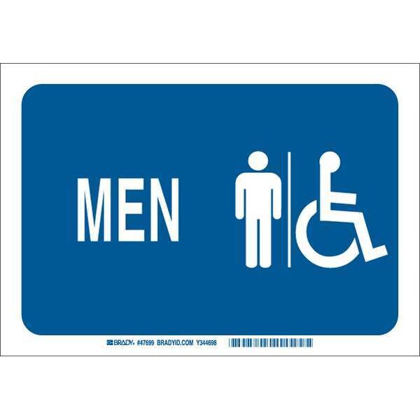 Facility Sign, Sign Subject Matter Restrooms, Height 10 In., Width 7 In., Sign Material Plastic, Sign Mounting Style With Mounting Holes, Header No Header, Legend Men, Printed Language English, Sign Shape Rectangle