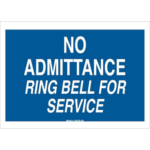 No Admittance Sign, Sign Subject Matter Employees and Visitors, Height 10 in, Width 14 in, Sign Material Plastic, Sign Mounting Style With Mounting Holes, Header No Header, Legend No Admittance Ring Bell For Service, Printed Language English, Sign Shape Rectangle