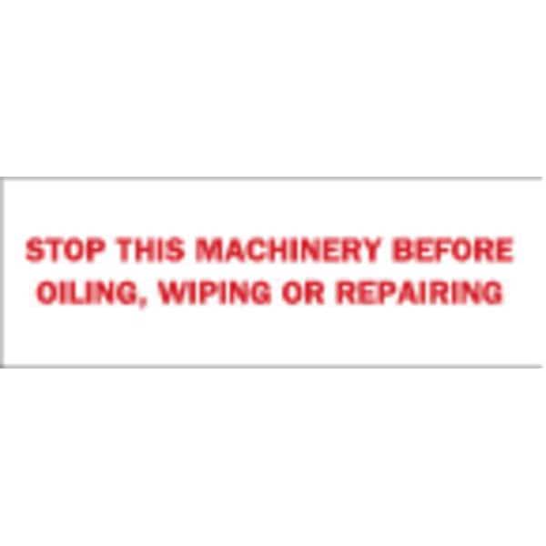 No Header, Stop This Machinery Before Oiling, Wiping Or Repairing, 10" W x 3-1/2" H, Rectangle