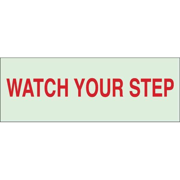 Safety Sign, Sign Subject Matter Accident Prevention, Height 2-1/2 In., Width 7 In., Sign Material Plastic, Sign Mounting Style With Mounting Holes, Header No Header, Legend Watch Your Step, Printed Language English, Sign Shape Rectangle