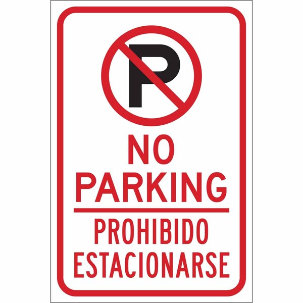 No Parking Sign, Height 18 in, Width 12 in, Sign Material Aluminum, Printed Language English, Spanish, Sign Shape Rectangle