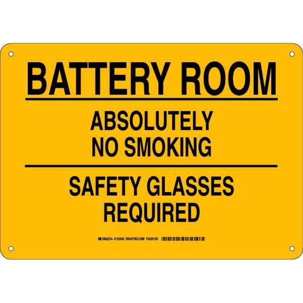No Smoking Sign, Sign Subject Matter No Smoking, Height 10 in, Width 14 in, Sign Material Plastic, Sign Mounting Style With Mounting Holes, Header No Header, Legend Battery Room Absolutely No Smoking Safety Glasses Required, Printed Language English, Sign Shape Rectangle