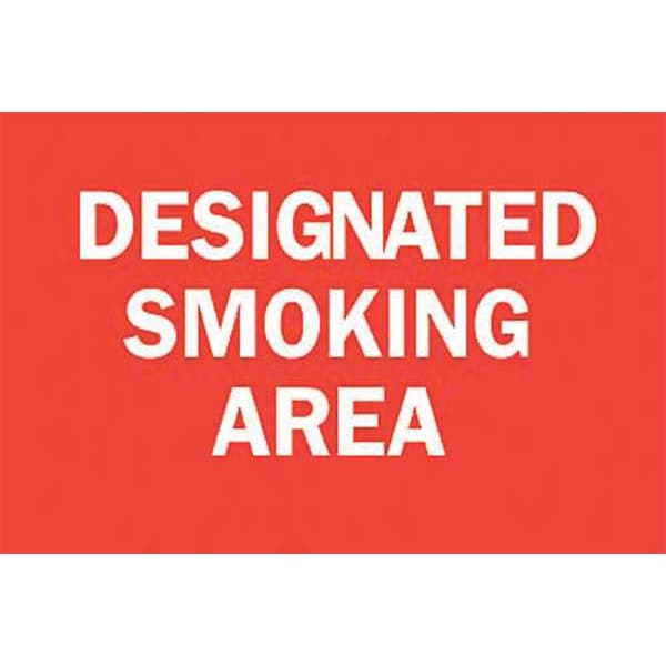 No Smoking Sign, Sign Subject Matter No Smoking, Height 10 in, Width 14 in, Sign Material Aluminum, Sign Mounting Style With Mounting Holes, Header No Header, Legend Designated Smoking Area, Printed Language English, Sign Shape Rectangle