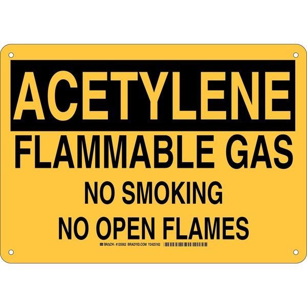 No Smoking Sign, Sign Subject Matter No Smoking, Height 10 in, Width 14 in, Sign Material Aluminum, Sign Mounting Style With Mounting Holes, Header Acetylene, Legend Flammable Gas No Smoking No Open Flames, Printed Language English, Sign Shape Rectangle