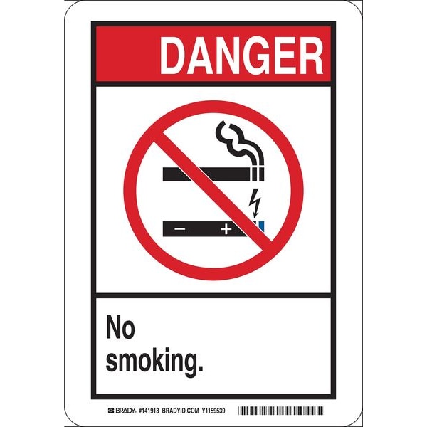 No Smoking Sign, Sign Subject Matter No Smoking, Height 10 in, Width 7 in, Sign Material Polyester, Sign Mounting Style Adhesive Surface, Header Danger, Legend No Smoking., Printed Language English, Sign Shape Rectangle