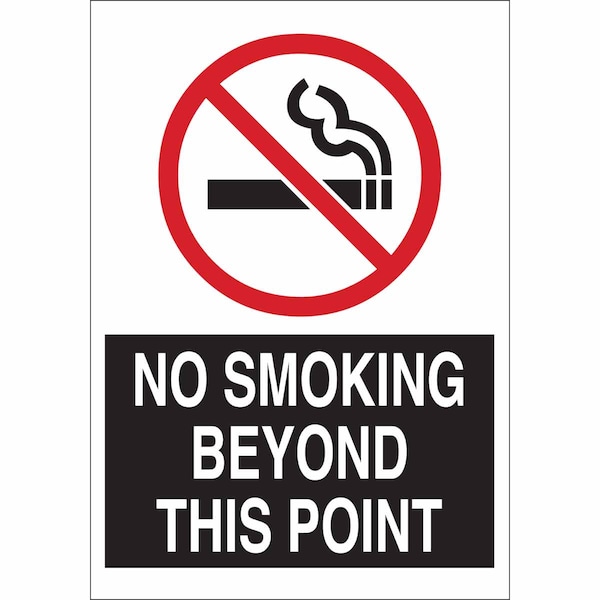 No Smoking Sign, Sign Subject Matter No Smoking, Height 10 in, Width 7 in, Sign Material Aluminum, Sign Mounting Style With Mounting Holes, Header No Header, Legend No Smoking Beyond This Point, Printed Language English, Sign Shape Rectangle