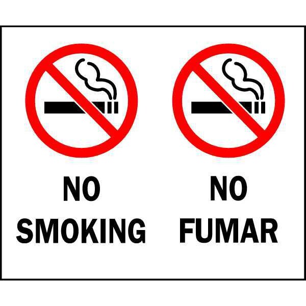 No Smoking Sign, Sign Subject Matter No Smoking, Height 10 in, Width 14 in, Sign Material Polyester, Sign Mounting Style Adhesive Surface, Header No Header, Legend No Smoking/No Fumar, Printed Language English, Spanish, Sign Shape Rectangle