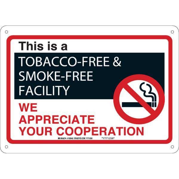 No Smoking Sign, Sign Subject Matter No Smoking, Height 14 in, Width 10 in, Sign Material Plastic, Sign Mounting Style With Mounting Holes, Header No Header, Legend This Is A Smoke-Free Facility We Appreciate Your Cooperation, Printed Language English, Sign Shape Rectangle