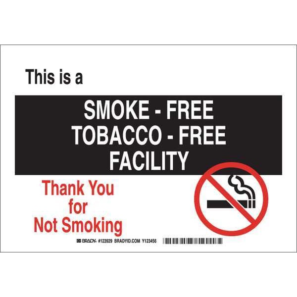No Smoking Sign, Sign Subject Matter No Smoking, Height 7 in, Width 10 in, Sign Material Plastic, Sign Mounting Style With Mounting Holes, Header No Header, Legend This Is A Smoke-Free Tobacco-Free Facility Thank You For Not Smoking, Printed Language English, Sign Shape Rectangle