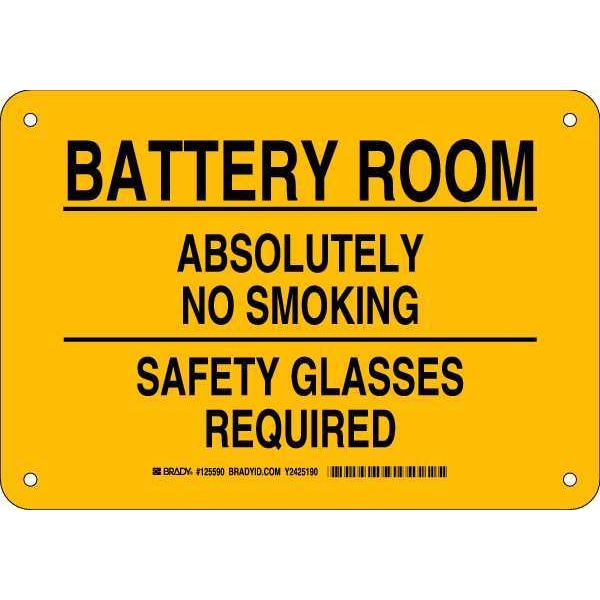 No Smoking Sign, Sign Subject Matter No Smoking, Height 7 in, Width 10 in, Sign Material Plastic, Sign Mounting Style With Mounting Holes, Header No Header, Legend Battery Room Absolutely No Smoking Safety Glasses Required, Printed Language English, Sign Shape Rectangle