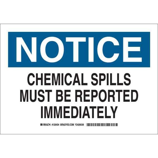 Notice, Chemical Spills Must Be Reported Immediately, 10" W x 7" H, Rectangle, Polyester, 126434