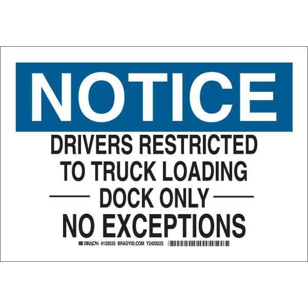 Notice, Drivers Restricted To Truck Loading Dock Only No Exceptions, 10" W x 7" H, Rectangle, 129533
