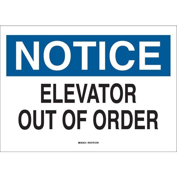 Notice Sign, Sign Subject Matter Elevator Hazard, Height 10 In., Width 14 In., Sign Material Polyester, Sign Mounting Style Adhesive Surface, Header Notice, Legend Elevator Out Of Order, Printed Language English, Sign Shape Rectangle