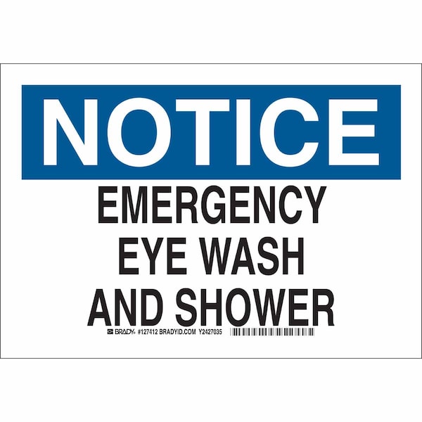 Notice, Emergency Eye Wash And Shower, 10" W x 7" H, Rectangle, Plastic, 127411