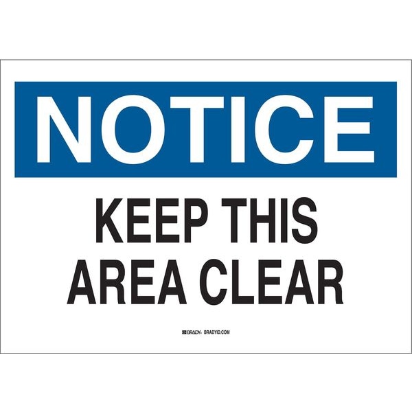 Notice Sign, Sign Subject Matter Keep Clear, Height 7 In., Width 10 In., Sign Material Plastic, Sign Mounting Style With Mounting Holes, Header Notice, Legend Keep This Area Clear, Printed Language English, Sign Shape Rectangle
