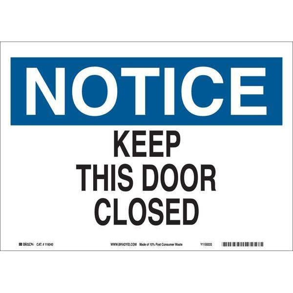 Notice, Keep This Door Closed, 14" W x 10" H, Rectangle, Plastic, 116204