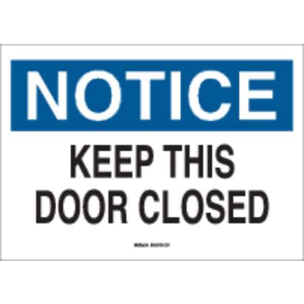 Notice Sign, Sign Subject Matter Door Instruction, Height 10 In., Width 14 In., Sign Material Polyester, Sign Mounting Style Adhesive Surface, Header Notice, Legend Keep This Door Closed, Printed Language English, Sign Shape Rectangle