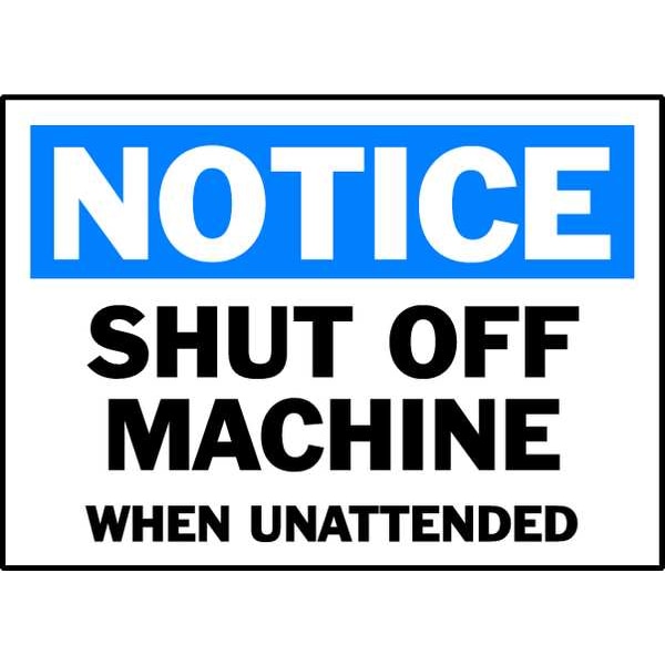 Notice Label, Vertical Rectangle, Number of Printed Sides 1, English, Sign Legend Shut Off Machine When Unattended, Sign Legend Style Text, Package Quantity 5