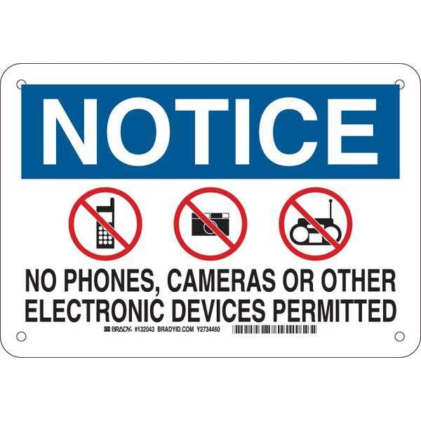 Security Sign, Sign Subject Matter Phone Usage, Height 7 In., Width 10 In., Sign Material Plastic, Sign Mounting Style With Mounting Holes, Header Notice, Legend No Phones, Cameras Or Other Electronic Devices Permitted, Printed Language English, Sign Shape Rectangle