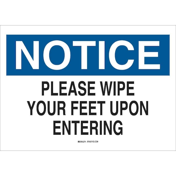 Notice Sign, Sign Subject Matter Cleaning and Maintenance, Height 7 In., Width 10 In., Sign Material Plastic, Sign Mounting Style With Mounting Holes, Header Notice, Legend Please Wipe Your Feet Upon Entering, Printed Language English, Sign Shape Rectangle