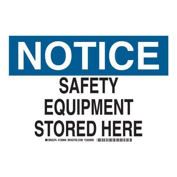 Notice Sign, Sign Subject Matter Facility, Height 7 In., Width 10 In., Sign Material Polyester, Sign Mounting Style Adhesive Surface, Header Notice, Legend Safety Equipment Stored Here, Printed Language English, Sign Shape Rectangle