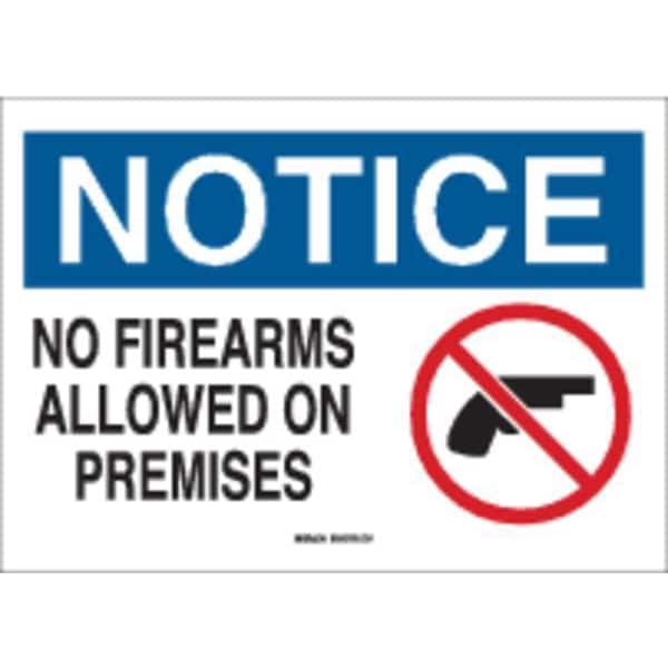 Notice Security Sign, Sign Subject Matter Weapons, Devices or Substances, Height 10 in, Width 14 in, Sign Material Plastic, Sign Mounting Style With Mounting Holes, Header Notice, Legend No Firearms Allowed On Premises, Printed Language English, Sign Shape Rectangle