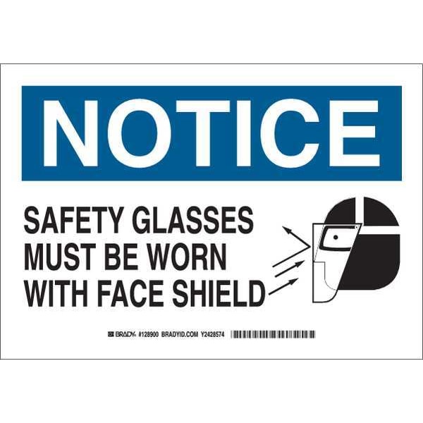 Notice Sign, Sign Subject Matter Personal Protection, Height 10 in, Width 14 in, Sign Material Polyester, Sign Mounting Style Adhesive Surface, Header Notice, Legend Safety Glasses Must Be Worn With Face Shield, Printed Language English, Sign Shape Rectangle