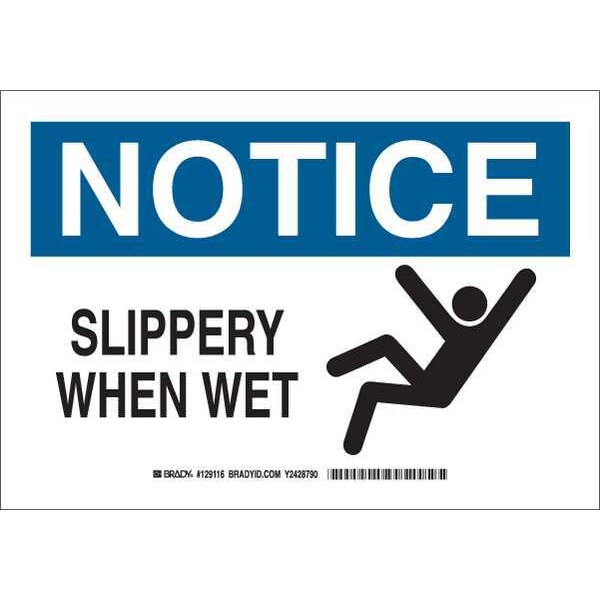 Notice Sign, Sign Subject Matter Accident Prevention, Height 7 In., Width 10 In., Sign Material Polyester, Sign Mounting Style Adhesive Surface, Header Notice, Legend Slippery When Wet, Printed Language English, Sign Shape Rectangle