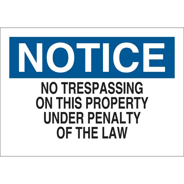 Notice Sign, Sign Subject Matter Trespassing and Property, Height 10 in, Width 14 in, Sign Material Polyester, Sign Mounting Style Adhesive Surface, Header Notice, Legend No Trespassing On This Property Under Penalty Of The Law, Printed Language English, Sign Shape Rectangle