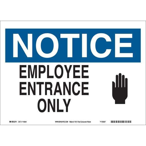 Notice Sign, Plastic, 10" W, 7" H, Employee Entrance Only, White