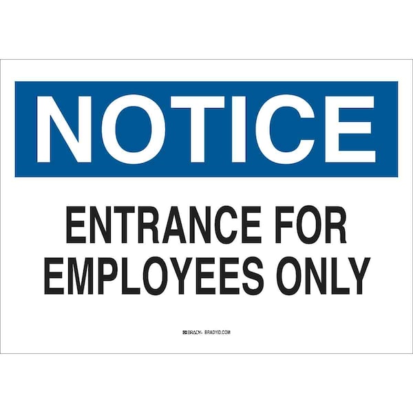 Notice Sign, Plastic, 10" W, 7" H, Entrance for Employees Only, White