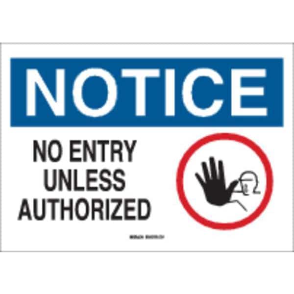 Notice Sign, Sign Subject Matter Exit and Entrance, Height 10 In., Width 14 In., Sign Material Plastic, Sign Mounting Style With Mounting Holes, Header Notice, Legend No Entry Unless Authorized, Printed Language English, Sign Shape Rectangle