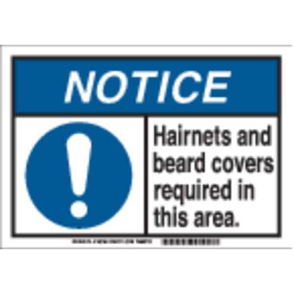 Notice Sign, Sign Subject Matter Personal Protection, Height 10 in, Width 14 in, Sign Material Plastic, Sign Mounting Style With Mounting Holes, Header Notice, Legend Hairnets And Beard Covers Required In This Area, Printed Language English, Sign Shape Rectangle