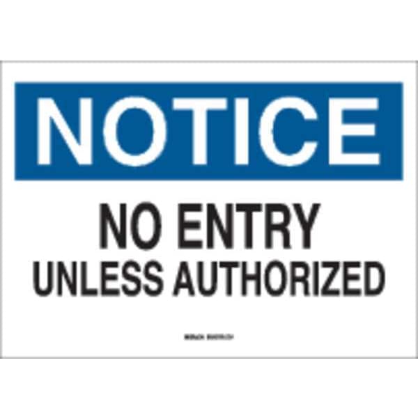 Notice Sign, Polyester, 10" W, 7" H, No Entry Unless Authorized, White