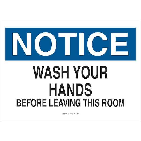 Notice Sign, Sign Subject Matter Wash Hands, Height 7 In., Width 10 In., Sign Material Plastic, Sign Mounting Style With Mounting Holes, Header Notice, Legend Wash Your Hands Before Leaving This Room, Printed Language English, Sign Shape Rectangle