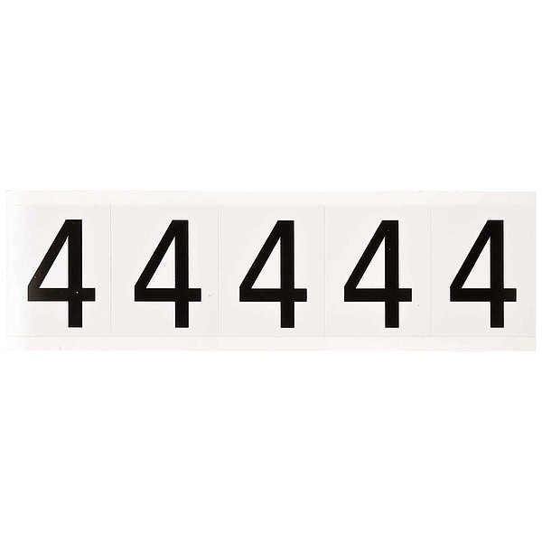 Number Label, Adhesive Type Permanent Adhesive, Application General Identification, Pipe and Valve Marking, APWA Compliant Color No, Background Color White, Character Color Black, Character Color Gradient Solid Color, Character Height 1 7/8 in, Character Outline Color Not Applicable, Character Type Numbers, Characters Included 4, Die Cut Yes, Embossed No, Font Helvetica, Includes (5) Labels, Indoor/Outdoor Usage Indoor/Outdoor, Letter Casing Uppercase, Material Vinyl