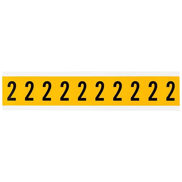 Number Label, Adhesive Type Permanent Adhesive, Application General Identification, Pipe and Valve Marking, APWA Compliant Color No, Background Color Yellow, Character Color Black, Character Color Gradient Solid Color, Character Height 1 in, Character Outline Color Not Applicable, Character Type Numbers, Characters Included 2, Die Cut Yes, Embossed No, Font Gothic, Includes (10) Labels, Indoor/Outdoor Usage Indoor/Outdoor, Letter Casing Uppercase, Material Vinyl
