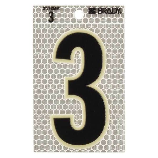Number Label, Adhesive Type Permanent Adhesive, Application General Identification, APWA Compliant Color No, Background Color Silver, Character Color Black/Green, Character Color Gradient Solid Color, Character Height 3 in, Character Outline Color Not Applicable, Character Type Numbers, Characters Included 3, Die Cut Yes, Embossed No, Font Archivo Narrow, Includes (10) Labels, Indoor/Outdoor Usage Indoor/Outdoor, Letter Casing Uppercase, Material Retroreflective Sheeting