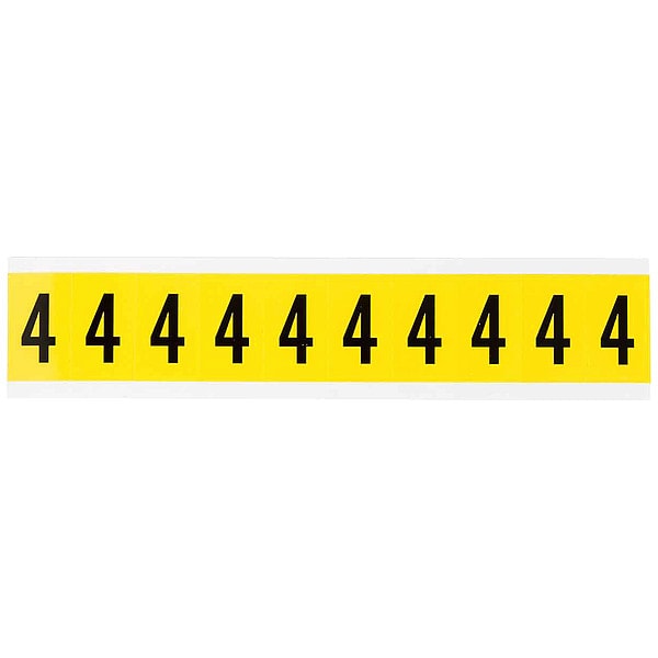 Number Label, Adhesive Type Removable and Repositionable Adhesive, Application General Identification, Wire and Cable Labeling, APWA Compliant Color No, Background Color Yellow, Character Color Black, Character Color Gradient Solid Color, Character Height 1 in, Character Outline Color Not Applicable, Character Type Numbers, Characters Included 4, Die Cut Yes, Embossed No, Font Gothic, Includes (10) Labels, Indoor/Outdoor Usage Indoor Only, Letter Casing Uppercase, Material Vinyl Cloth