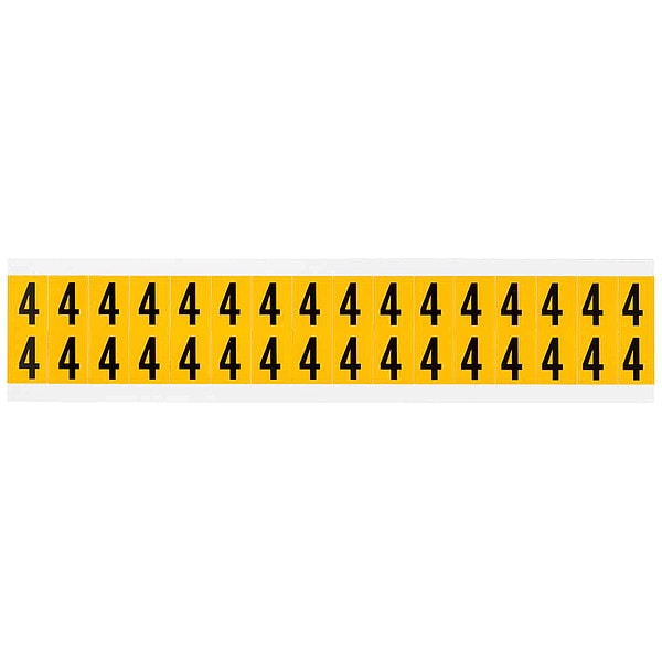 Number Label, Adhesive Type Permanent Adhesive, APWA Compliant Color No, Background Color Yellow, Character Color Black, Character Height 5/8 in, Character Type Numbers, Characters Included 4, Die Cut Yes, Font Gothic, Indoor/Outdoor Usage Indoor/Outdoor, Material Vinyl, Meets USCG Registration Guidelines No, Number of Pieces 1, Overall Height 3/4 in, Overall Width 5/8 in, Retroreflective Grade Non-Reflective, Standards ASTM D 2979