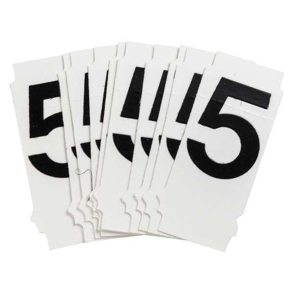 Number Label, Adhesive Type Permanent Adhesive, Application General Identification, APWA Compliant Color No, Background Color White, Character Color Black, Character Color Gradient Solid Color, Character Height 1 in, Character Outline Color Not Applicable, Character Type Numbers, Characters Included 5, Die Cut Yes, Embossed No, Font Helvetica, Includes (10) Labels, Indoor/Outdoor Usage Indoor/Outdoor, Letter Casing Uppercase, Material Polyester, Meets USCG Registration Guidelines No