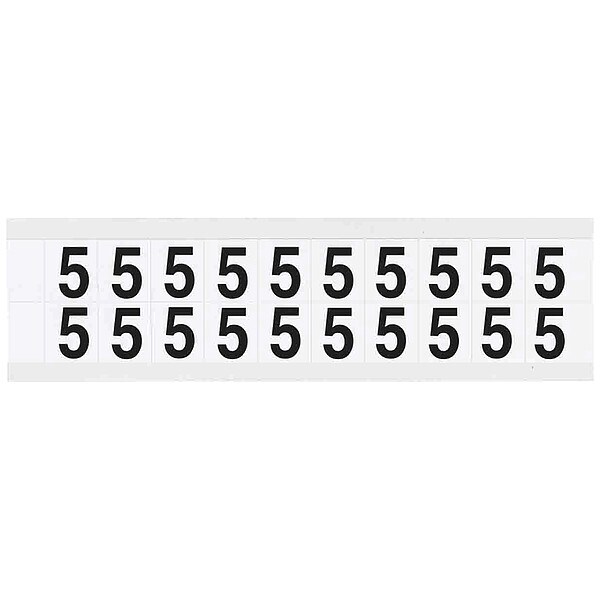 Number Label, Adhesive Type Permanent Adhesive, Application General Identification, Pipe and Valve Marking, APWA Compliant Color No, Background Color White, Character Color Black, Character Color Gradient Solid Color, Character Height 5/8 in, Character Outline Color Not Applicable, Character Type Numbers, Characters Included 5, Die Cut Yes, Embossed No, Font Helvetica, Includes (20) Labels, Indoor/Outdoor Usage Indoor/Outdoor, Letter Casing Uppercase, Material Vinyl