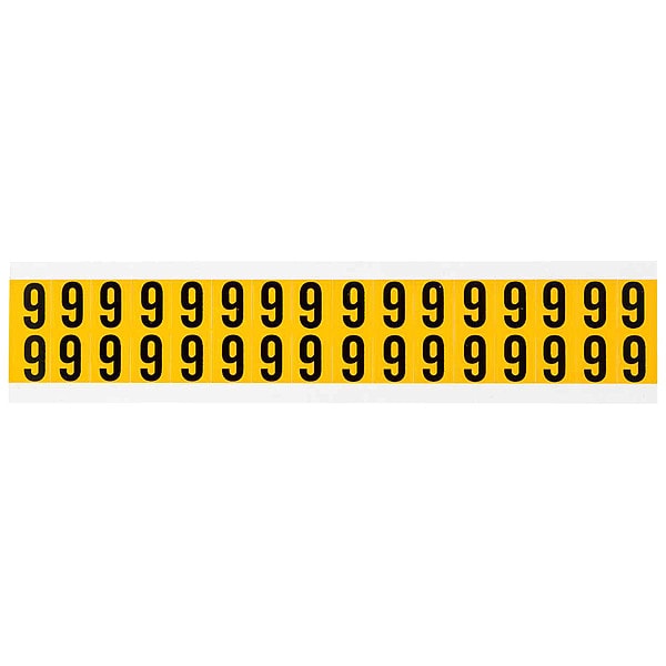 Number Label, Adhesive Type Permanent Adhesive, Application General Identification, Pipe and Valve Marking, APWA Compliant Color No, Background Color Yellow, Character Color Black, Character Color Gradient Solid Color, Character Height 5/8 in, Character Outline Color Not Applicable, Character Type Numbers, Characters Included 6 or 9, Die Cut Yes, Embossed No, Font Gothic, Includes (10) Labels, Indoor/Outdoor Usage Indoor/Outdoor, Letter Casing Uppercase, Material Vinyl