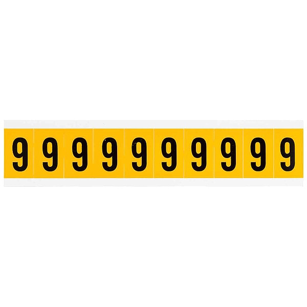 Number Label, Adhesive Type Permanent Adhesive, Application General Identification, Pipe and Valve Marking, APWA Compliant Color No, Background Color Yellow, Character Color Black, Character Color Gradient Solid Color, Character Height 1 in, Character Outline Color Not Applicable, Character Type Numbers, Characters Included 6 or 9, Die Cut Yes, Embossed No, Font Gothic, Includes (10) Labels, Indoor/Outdoor Usage Indoor/Outdoor, Letter Casing Uppercase, Material Vinyl