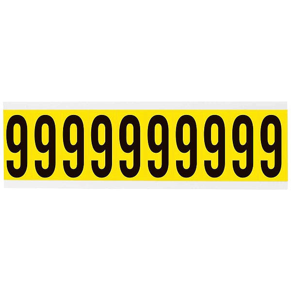 Number Label, Adhesive Type Removable and Repositionable Adhesive, Application General Identification, Wire and Cable Labeling, APWA Compliant Color No, Background Color Yellow, Character Color Black, Character Color Gradient Solid Color, Character Height 2 in, Character Outline Color Not Applicable, Character Type Numbers, Characters Included 6 or 9, Die Cut Yes, Embossed No, Font Gothic, Includes (10) Labels, Indoor/Outdoor Usage Indoor Only, Letter Casing Uppercase, Material Vinyl Cloth