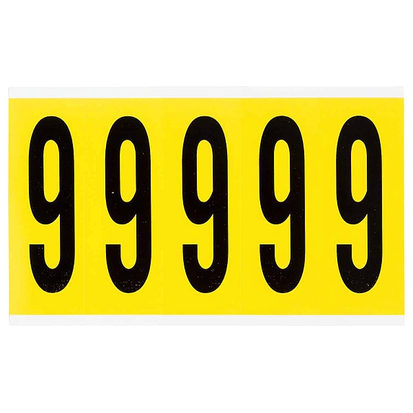 Number Label, Adhesive Type Removable and Repositionable Adhesive, Application General Identification, Wire and Cable Labeling, APWA Compliant Color No, Background Color Yellow, Character Color Black, Character Color Gradient Solid Color, Character Height 4 in, Character Outline Color Not Applicable, Character Type Numbers, Characters Included 6 or 9, Die Cut Yes, Embossed No, Font Gothic, Includes (5) Labels, Indoor/Outdoor Usage Indoor Only, Letter Casing Uppercase, Material Vinyl Cloth