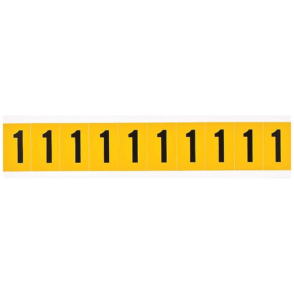 Number Label, Adhesive Type Permanent Adhesive, Application General Identification, Pipe and Valve Marking, APWA Compliant Color No, Background Color Yellow, Character Color Black/Yellow, Character Color Gradient Solid Color, Character Height 1 in, Character Outline Color Not Applicable, Character Type Numbers, Characters Included 1, Die Cut Yes, Embossed No, Font Archivo Narrow, Includes (25) Labels, Indoor/Outdoor Usage Indoor/Outdoor, Letter Casing Uppercase, Material Vinyl