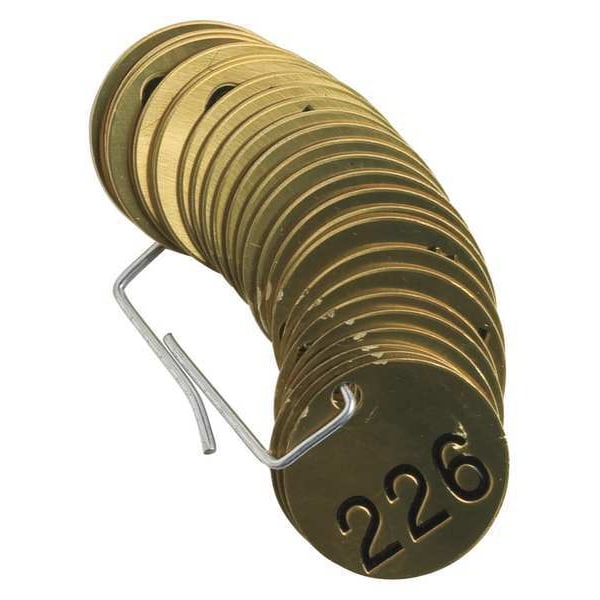 Numbered Tag Set, Valve Tag Application General Purpose, Tag Shape Round, Character Type Numbers, Serialization Method Consecutive Numbers, Number Sequence 226-250, No Text, Number of Printed Sides 1, Package Quantity 25