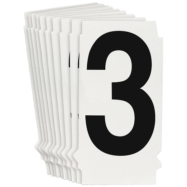 Number Label, Adhesive Type Permanent Adhesive, Application General Identification, APWA Compliant Color No, Background Color Not Applicable, Character Color Black, Character Color Gradient Solid Color, Character Height 1 1/2 in, Character Outline Color Not Applicable, Character Type Numbers, Characters Included 3, Die Cut Yes, Embossed No, Font Helvetica, Includes (10) Labels, Indoor/Outdoor Usage Indoor/Outdoor, Letter Casing Uppercase, Material Polyester, Meets USCG Registration Guidelines No